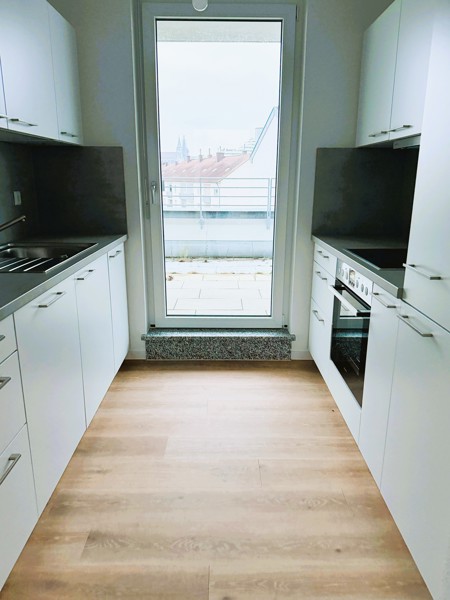 Erleben Sie Wohnkomfort der Extraklasse in diesem großzügigen Penthouse. Helle, lichtdurchflutete Räume mit hochwertigem Vinyl-Boden in Parkett-Optik verleihen der gesamten Wohnung eine einladende Atmosphäre. Das Herzstück bildet die offene, voll ausgestattete Markenküche, die ein modernes Wohnambiente schafft. Ein praktischer Abstellraum sorgt für zusätzlichen Stauraum und Ordnung. Das elegante Tageslichtbad überzeugt mit Dusche und WC, während ein eigener Waschmaschinenanschluss besonders komfortabel ist. Die beeindruckende Dachterrasse und die großzügige Loggia bieten Ihnen exklusiv Raum für Entspannung. Ein Tiefgaragen-Stellplatz kann auf Wunsch angemietet werden.