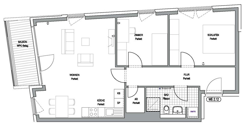 Aufzug, Balkon, Duschbad, Einbauküche, Hausmeister, Kabel-TV, Klingel mit Sprechanlage, Parkett, Stellplatz, Waschmaschinenanschluss, Wohnküche,