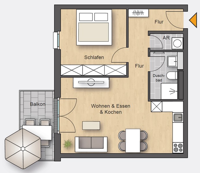Erleben Sie exklusives Wohngefühl in dieser großzügigen Etagenwohnung, die mit edlem Eichenparkett und behaglicher Fußbodenheizung in allen Wohn- und Schlafräumen höchsten Wohnkomfort bietet. Die lichtdurchfluteten Räume schaffen eine inspirierende Atmosphäre und laden zum Wohlfühlen ein. Die offene Markenküche mit hochwertigen Einbaugeräten überzeugt durch Funktionalität und modernes Design, während der praktische Abstellraum zusätzlichen Stauraum bietet. Das Schlafzimmer beeindruckt durch seinen großzügigen Zuschnitt, das stilvolle Bad mit Dusche und WC ergänzt das elegante Gesamtbild. Ein Waschmaschinenanschluss in der Wohnung sorgt für zusätzlichen Komfort. Der große Balkon und ein großzügiger Tiefgaragenplatz runden dieses attraktive Angebot ab.
