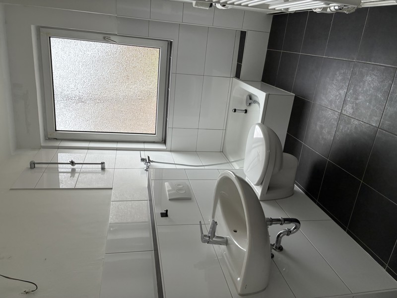 Das Tageslichtbadezimmer ist mit einer Dusche ausgestattet und verfügt über einen Waschmaschinenfreistellplatz.