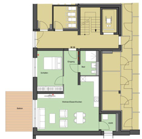 Willkommen in Ihrer großzügigen Erdgeschosswohnung, die mit edlem Parkettboden in sämtlichen Wohn- und Schlafbereichen ein stilvolles Wohlfühlambiente schafft. Die lichtdurchfluteten Räume überzeugen durch ihre Helligkeit und sorgen für ein angenehmes Wohngefühl. Mittelpunkt der Wohnung ist die offene Küche mit nagelneuer, moderner Einbauküche – perfekt für gesellige Stunden. Der praktische Abstellraum bietet zusätzlichen Stauraum und hält Ihr Zuhause ordentlich. Im Schlafzimmer begeistert der großzügige Grundriss. Das elegante Bad verfügt über eine hochwertige Dusche und ein WC; ein eigener Waschmaschinenanschluss bietet zusätzlichen Komfort. Die sonnige Terrasse lädt zu entspannten Momenten im Freien ein. Ein Kellerraum sorgt für weitere Staufläche, ein Tiefgaragenstellplatz kann optional angemietet werden.
