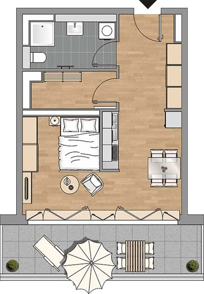 Lassen Sie den Alltag hinter sich: Relaxen auf dem Balkon, der Loggia , der (Dach)Terrasse oder ein gemütliches Treffen mit netten Nachbarn in den begrünten Innenhof-Oasen und Erholungsbereichen – ausschließlich für die Bewohner des UP!M. Auch die Tiefgarage mit der eigenen Ein- /Ausfahrt und Aufzugsanbindung in alle Wohnetagen schafft Komfort und Luxus.