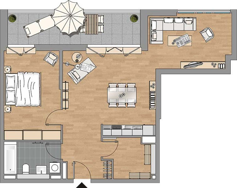 Lassen Sie den Alltag hinter sich: Relaxen auf dem Balkon, der Loggia , der (Dach)Terrasse oder ein gemütliches Treffen mit netten Nachbarn in den begrünten Innenhof-Oasen und Erholungsbereichen – ausschließlich für die Bewohner des UP!M. Auch die Tiefgarage mit der eigenen Ein- /Ausfahrt und Aufzugsanbindung in alle Wohnetagen schafft Komfort und Luxus.