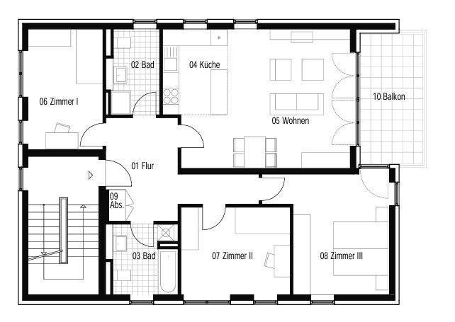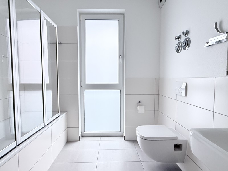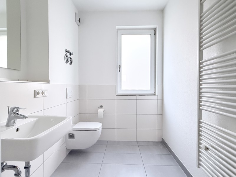 Unsere KfW-Effizienzhäuser 55 (EnEV 2009) verfügen über einen sehr guten Wärmedämmstandard in Verbindung mit einer umweltfreundlichen, modernen Heizanlage. Je nach dem für welche Wohnung Sie sich entscheiden, genießen Sie entweder Balkon, Dachterrasse oder Terrasse mit privatem Gartenanteil. Die Wohnräume sind klassisch mit Raufaser tapeziert und weiß gestrichen. Die gesamte Wohnung ist mit einer wohlig warmen Fußbodenheizung ausgestattet. Das Bad glänzt mit modernen Fliesen und Handtuch-Heizkörper. Die Kunststofffenster sind aus 3-Scheiben-Wärmeschutz-Isolierglas. Die luxuriösen Rollläden sind elektrisch betrieben. Optional kann ein großzügiger Tiefgaragenstellplatz angemietet werden.