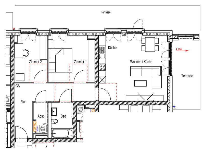 Die offene Markenküche mit Einbaugeräten ist komplett ausgestattet und schafft ein ausgesprochen angenehmes Wohnambiente. Der zusätzliche Abstellraum schafft Platz. Das Highlight der beiden Schlafzimmer ist zweifellos der jeweils direkte Zugang zur Terrasse. Das elegante Bad ist mit Badewanne und WC ausgestattet. Besonders bequem ist auch der Waschmaschinenanschluss in Ihrer Wohnung. Der beiden Terrassen stellen höchste Wohn- und Lebensqualität sicher. Und als weiteres Highlight verfügt Ihre Wohnung über einen Gartenanteil.