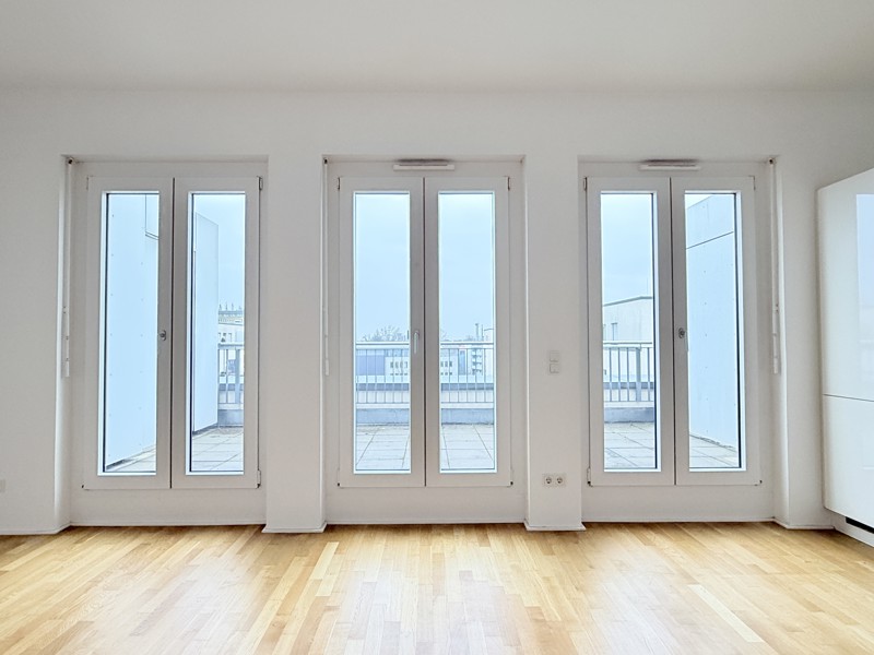 Erleben Sie Wohnkomfort auf höchstem Niveau: Diese großzügige Penthouse-Wohnung beeindruckt in allen Wohn- und Schlafräumen mit edlem Parkett und moderner Fußbodenheizung, die für ein behagliches Ambiente sorgt. Lichtdurchflutete Räume und eine offen gestaltete Markenküche mit hochwertigen Einbaugeräten laden zum Wohlfühlen und Genießen ein. Praktischer Stauraum steht Ihnen durch einen separaten Abstellraum zur Verfügung. Das Wohnzimmer begeistert mit direktem Zugang zur weitläufigen Dachterrasse. Ein stilvolles Tageslichtbad mit Dusche, Badewanne und WC sowie ein komfortabler Waschmaschinenanschluss vervollständigen das hochwertige Gesamtbild dieser Wohnung.
