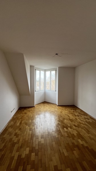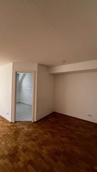 Parkettboden Echtholz, Wände weiß, Wannenbad, Küche an Wohnzimmer, Fußbodenheizung und Balkon. Parkmöglichkeiten durch Außenstellplätze und Einzelgaragen. Die Wohnung umfasst 3 Räume und eine separate Abstellkammer.
